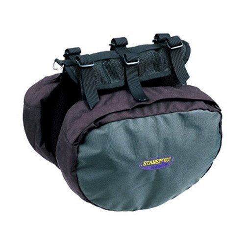 Light weight materials with poly fleece inner surfaces provide comfort and stability for extended trips and hikes. Large zippered side pockets hold your pets supplies safely and securely. Breathable back panel eliminates "Hot Spots" and chaffing. Easily adjusts to provide a custom fit for your Dogs shape. Integrated "D" ring for leash attachment. Fits most dogs weighing 30 to 90 lbs. Bags are 13" x 9" *Will NOT act as a PFD for your pet. Assorted colors: Black/black, black/blue.